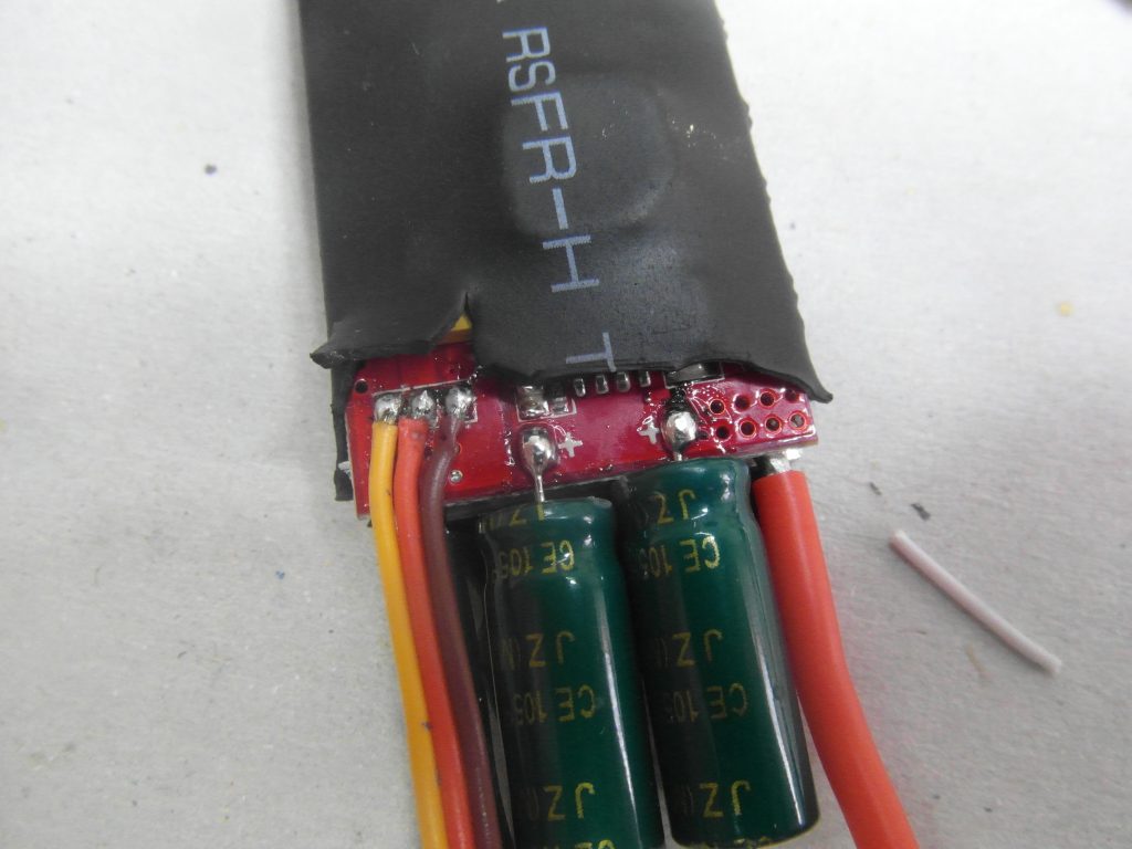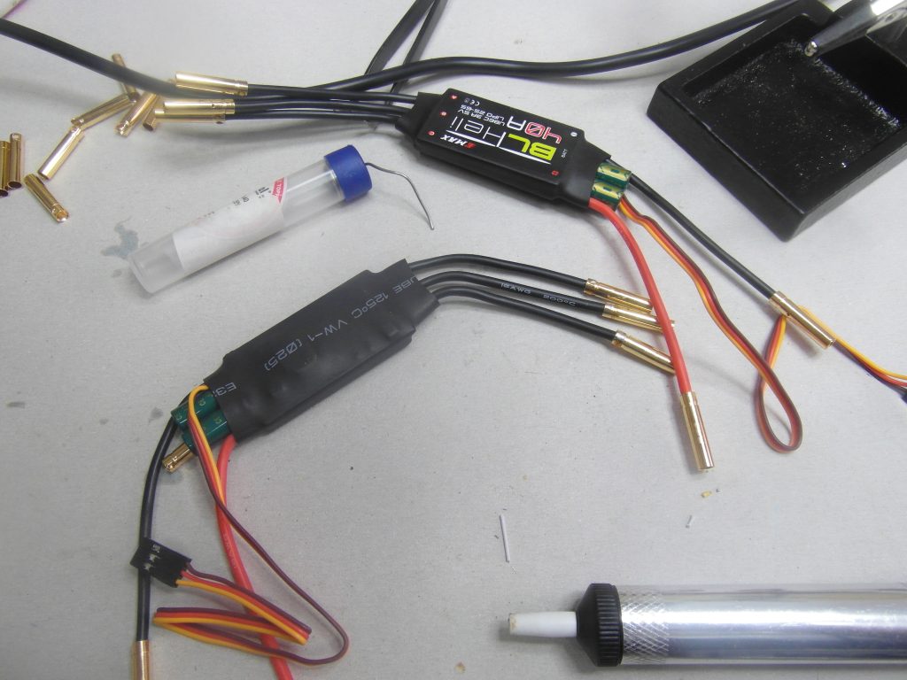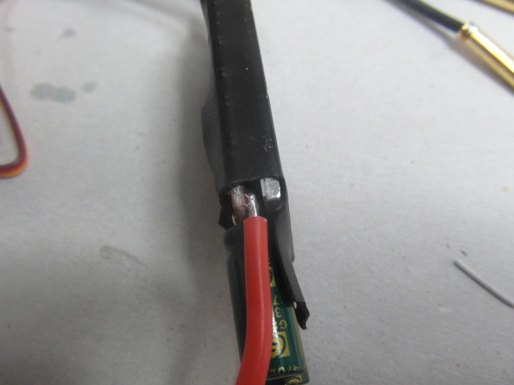 Dzisiejszy dzień częściowo jest dla mnie stracony choć sam jeszcze nie wiem. Próbowałem wymyślić co zrobić z kablami tylko do kontrolera od ESC. Myślałem że rozetne jak radził Marcin koszulkę i będę lutował dłuższe kable jakie kupiłem. Okazało się że 30 cm kable jakie kupiłem są za krótkie … Poszedłem do sklepu elektronicznego aby kupić wtyki JR aby dać dłuższe kable, okazało się że nie mają czegoś takiego. W ogóle facet był zdziwiony co to takiego jest … a jak się spytałem czy istnieją gniazda to mi powiedziali że przecież do tego są goldpiny i nie ma gniazd. Wróciłem i na allegro kupiłem gniazda, będę robił przedłużacz, a łączenie aby się nie rozłączyło zabezpieczę koszulką termozgrzewalną. Czyli jednak nie będę rozcinał ESC choć już jedno rozciąłem a zdjęcia macie poniżej.
