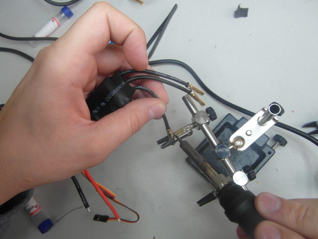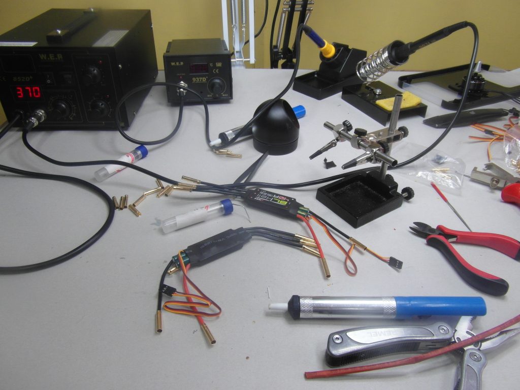 Resztę czasu jaki mogłem poświęcić na prace poświęciłem lutowaniu gniazd GOLD do ESC. Wieczorem na streamie będę robił lutowanie wtyków i składanie silników. Jutro muszę iść jeszcze raz do tego sklepu bo mieli duży wybór termokurczliwych koszulek aby dobrać taką aby idealnie pasowała mi do GOLDów oraz taka aby ten rozcięty ESC zabezpieczyć 🙂